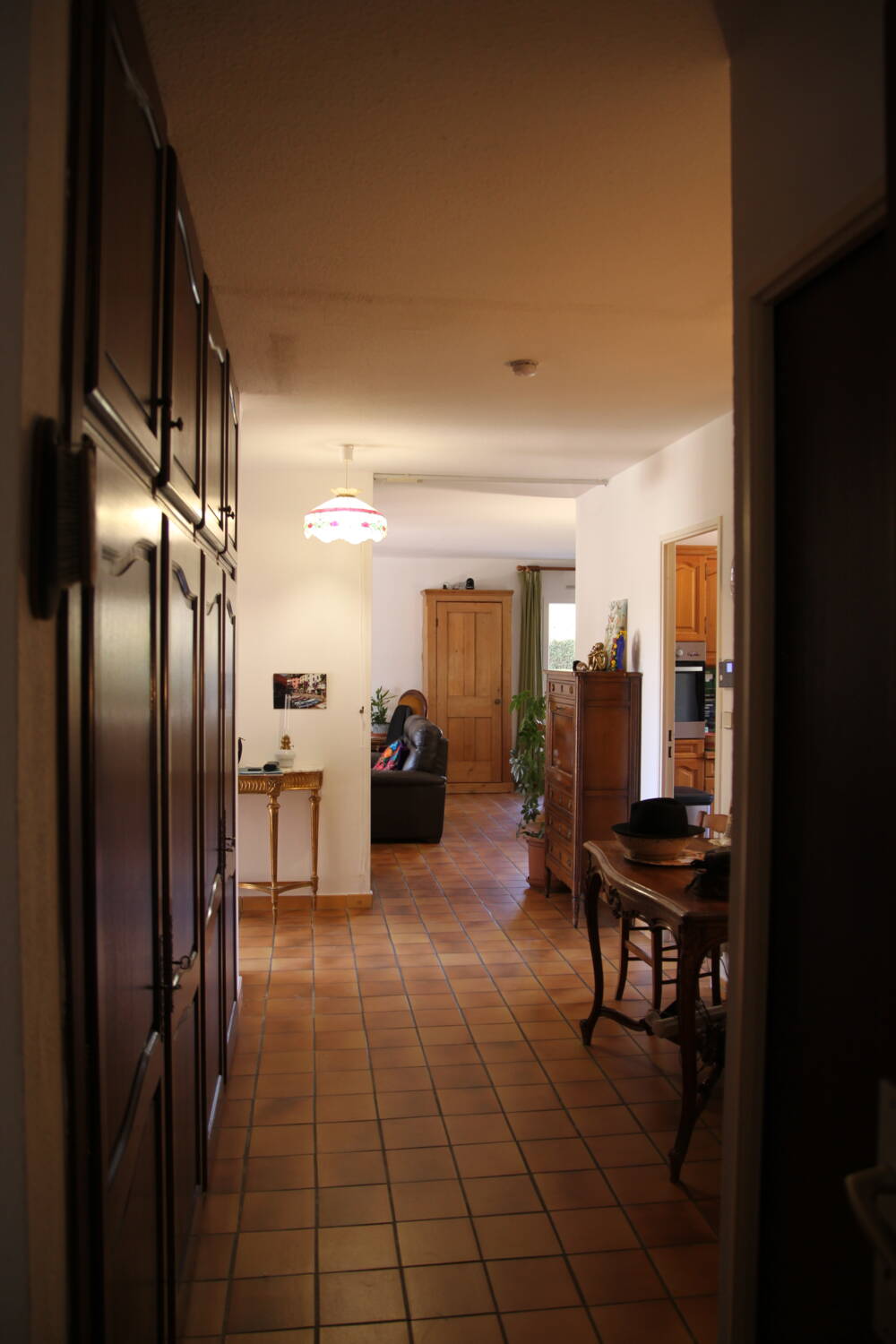 Elle se compose d'un hall d'entrée avec penderies, d'un grand séjour avec feu ouvert, d'une véranda, d'une cuisine, avec une arrière-cuisine, d'un cellier, de 4 grandes chambres, d'une salle de bain, d'une salle d'eau, 2 wc et d'un garage.