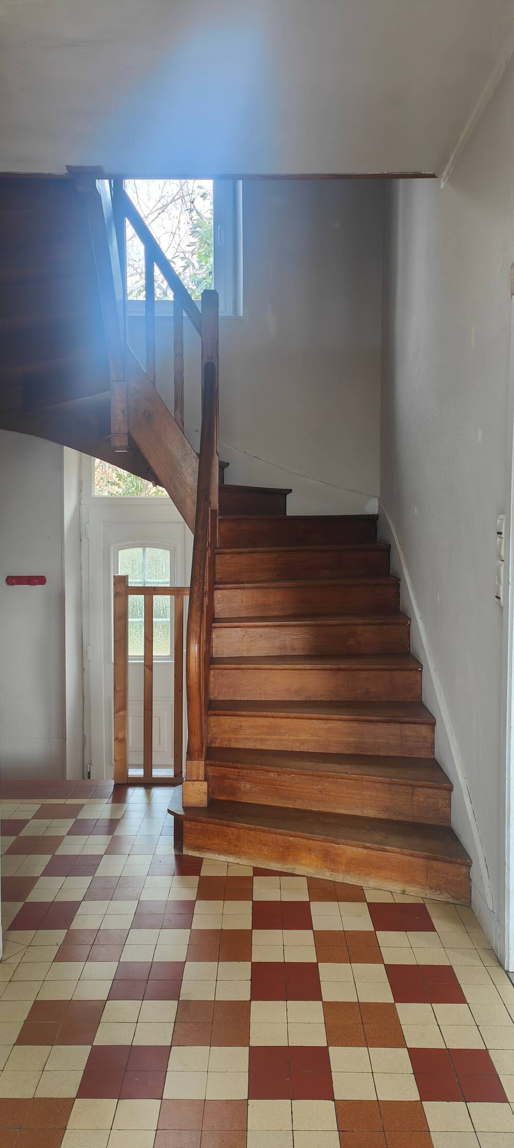 A l'étage : trois chambres dont une de plus de 17 m², WC indépendants et salle-de-bains ainsi qu'une coursive surplombant le salon / salle-à-manger.