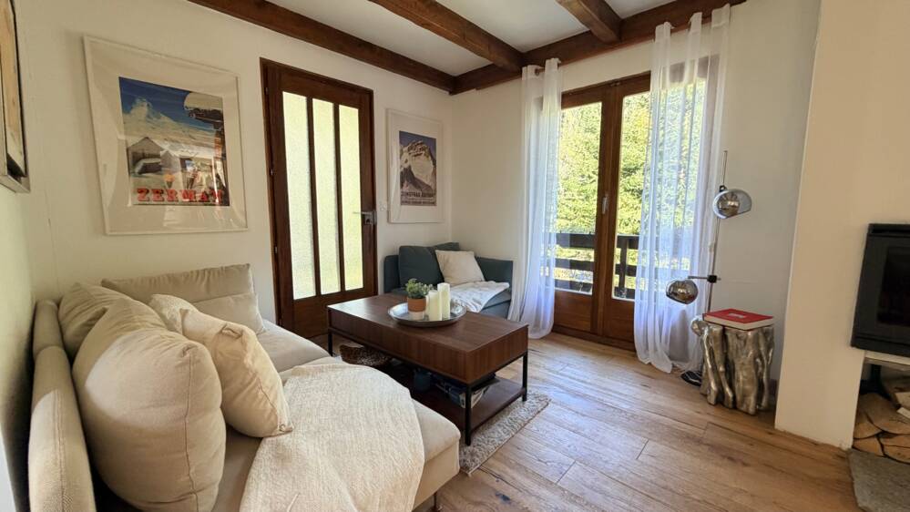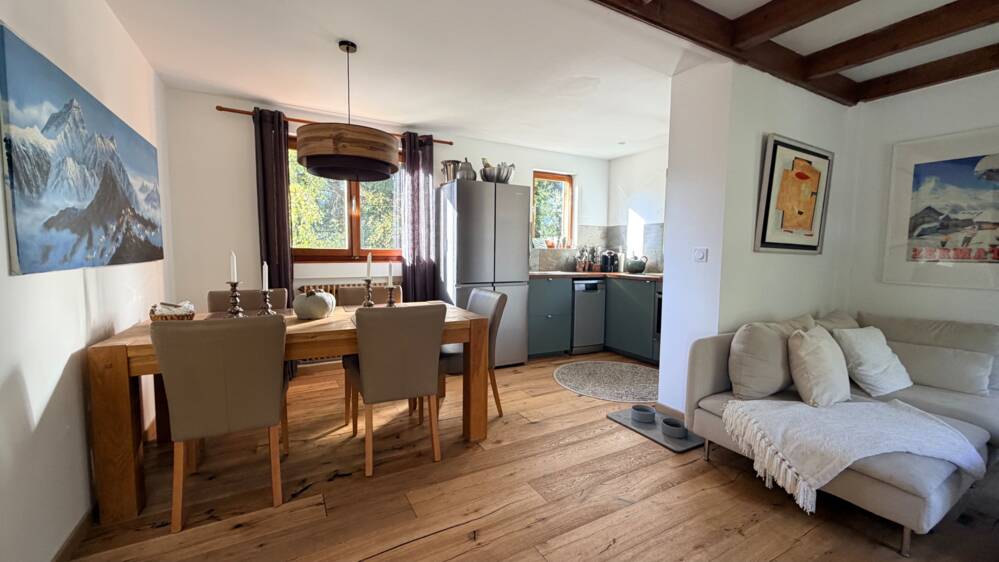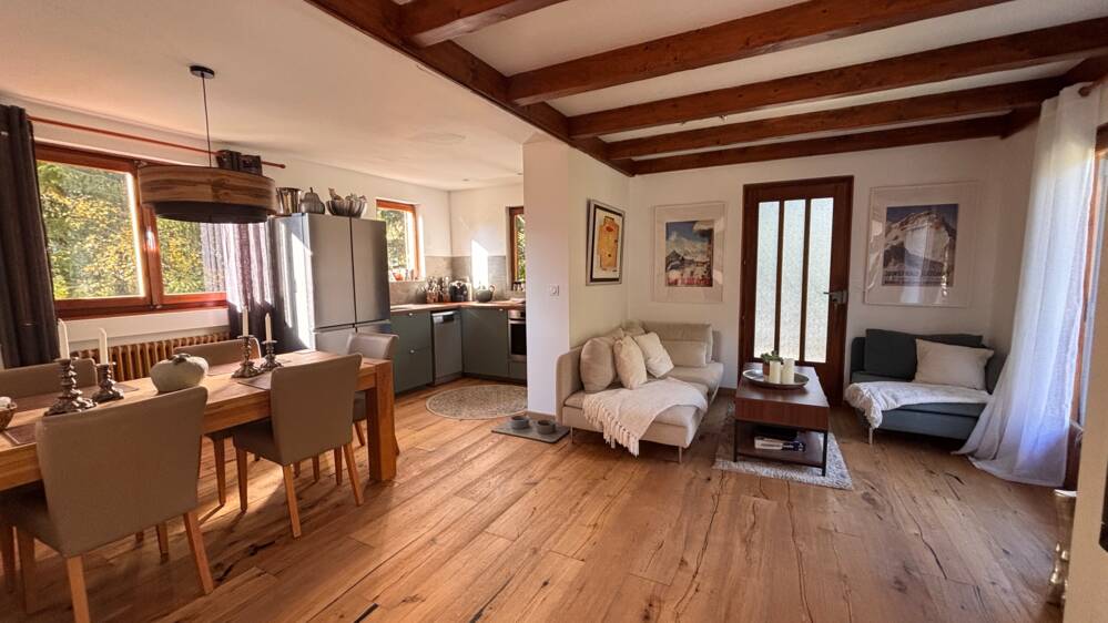 LC4717 CHAMONIX MONT-BLANC, SOUTH SIDE - LES MOUSSOUX, Very nice location for this renovated 4-room apartment of more than 79.34 m² Carrez law benefiting from a large bright living room with open kitchen, 2 large bedrooms and a small bedroom, 1 bathroom and WC. In the immediate vicinity of the PLAN PRAZ - BREVENT estate and the town center. FAVORITE - Quiet - small characterful condominium of 3 Lots with low charges - Outbuildings: a cellar of approximately 19 m², 2 outdoor parking spaces and exclusive use of a cellar of approximately 7.5 m² - New individual electric boiler - Independent real estate advisor / Commercial agent RSAC 443 480 553 Laurent CAILLET 0661972277 - Vallée de Chamonix Blanc