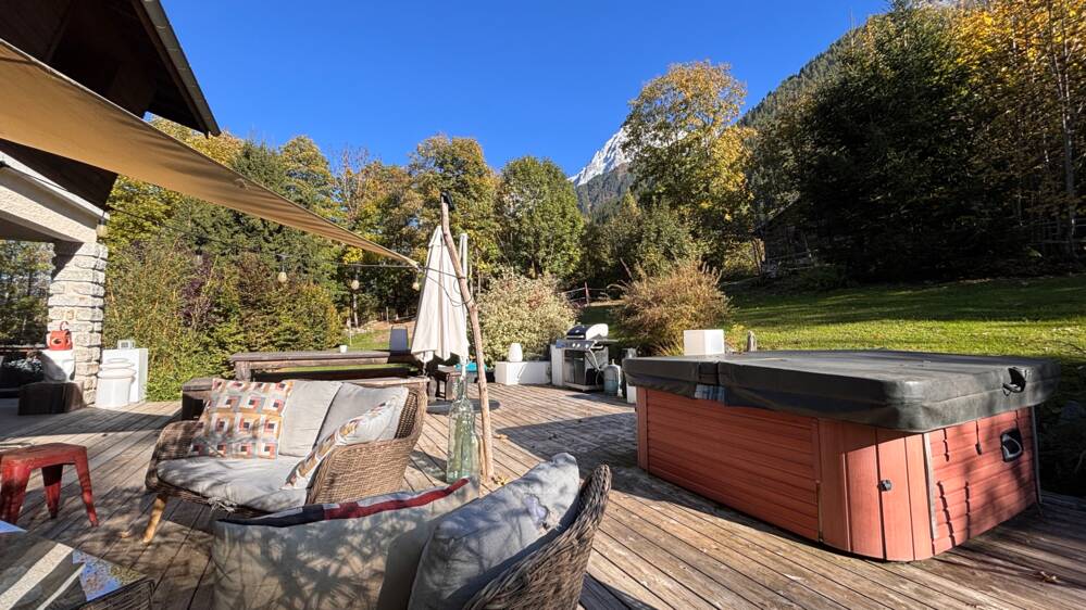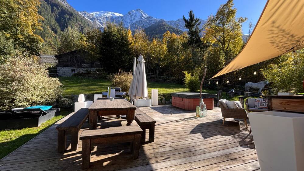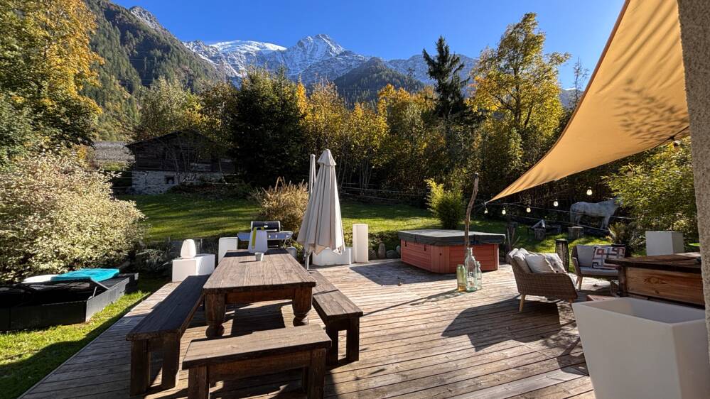 LC5135 VALLEE DE CHAMONIX MONT-BLANC, LES HOUCHES Magnifique Maison de pays de 1963 complètement rénové situé dans un cadre Champêtre, au calme comprenant 9 pièces 5 chambres incluant un appartement 2 pièces en Rez de jardin de 30 m² Env. L'habitation principale  de 165 m² env. comprend une entrée avec wc indépendant, dressing , une immense grande pièce de séjour avec cheminée, cuisine ouverte toute équipée, salle à manger avec accès à un grand balcon-terrasse , à l'étage on distingue 4 chambres dont une en suite avec wc et accès à un balcon terrasse, un wc indépendant, une salle de douche. Vous serez séduits par cette propriété situé au calme, sans vis à vis, grande terrasse bois plein sud avec son Jacuzzi et une vue imprenable sur le massif du Mont-Blanc. Elle dispose également d'une Bergerie de 1890. Possibilité de jouissance de terrain complémentaire contre entretien de plus de 12.800 m² environ sous l'acceptation des propriétaires. Exceptionnel et rare pour les amoureux de la nature, a proximité des commodités et des transports en commun.
