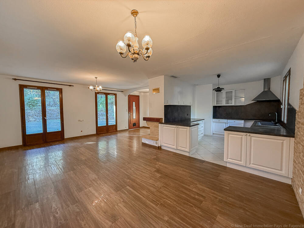 CG5110_Entre Mons et Callian, nichée en pleine nature sur un terrain clos de 3 200 m², découvrez cette belle propriété de plain-pied qui comprend une entrée, un grand espace de vie comprenant un séjour lumineux avec cheminée et une cuisine ouverte, aménagée et équipée, 3 chambres confortables, une salle de bains et un WC indépendant. En annexe, un garage attenant à la maison avec mezzanine pour un espace de rangement supplémentaire, et un grand vide sanitaire pouvant être transformé en espace de rangement. Maison équipée d'une pompe à chaleur installée récemment! Prix : 379.000 €