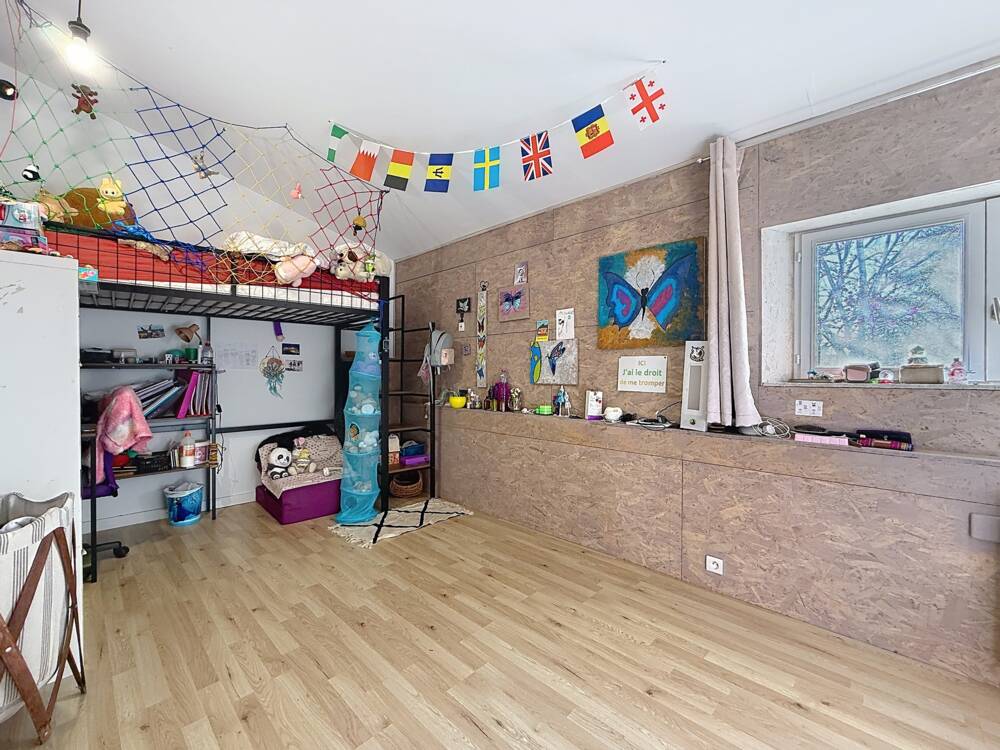 Le rez-de-chaussée comprend une cuisine séparée spacieuse, un salon agrémenté d’une cheminée, un petit jardin d’hiver et une buanderie équipée d’un sanitaire.