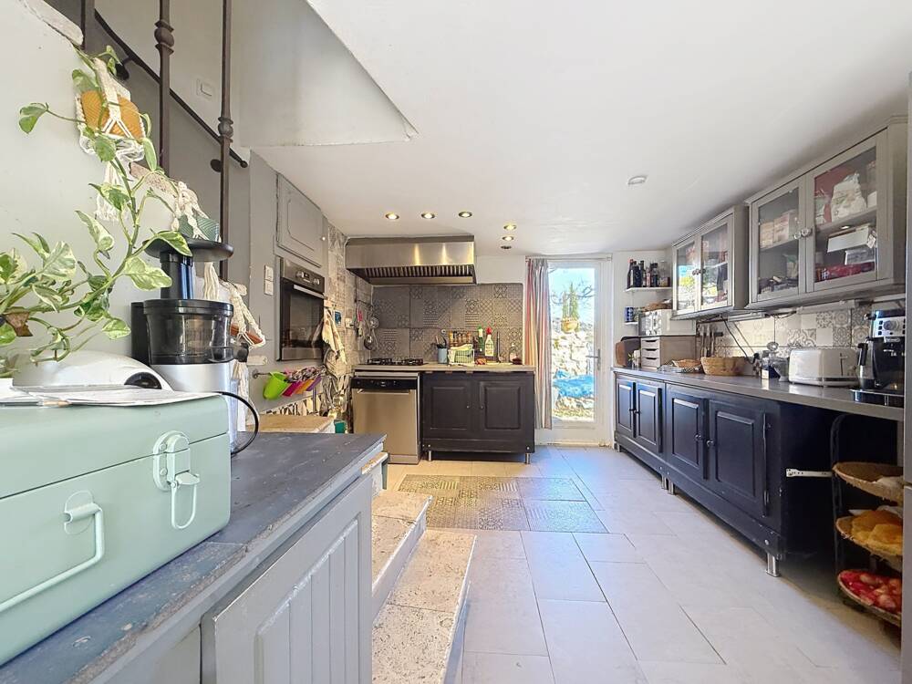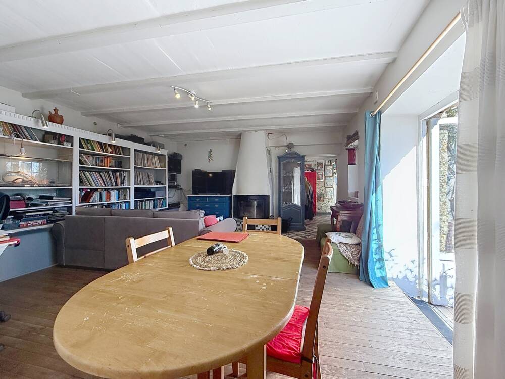 CG5028_Between Mons and Callian, nestled in the heart of nature on a 3,200 m² plot of enclosed land, discover this beautiful single-storey property comprising an entrance hall, a large living area including a bright living room with fireplace and an open-plan fitted and equipped kitchen, 3 comfortable bedrooms, a bathroom and a separate toilet. There is an attached garage with a mezzanine for additional storage space, and a large crawl space that could be converted into storage space. The house is equipped with a recently installed heat pump. Immediate viewing! Price: €400,000