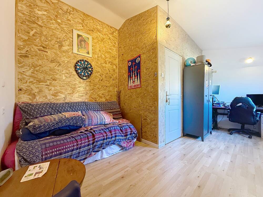 L’étage supérieur propose deux chambres dont une traversante, un bureau, un sanitaire séparé, une salle d'eau,
