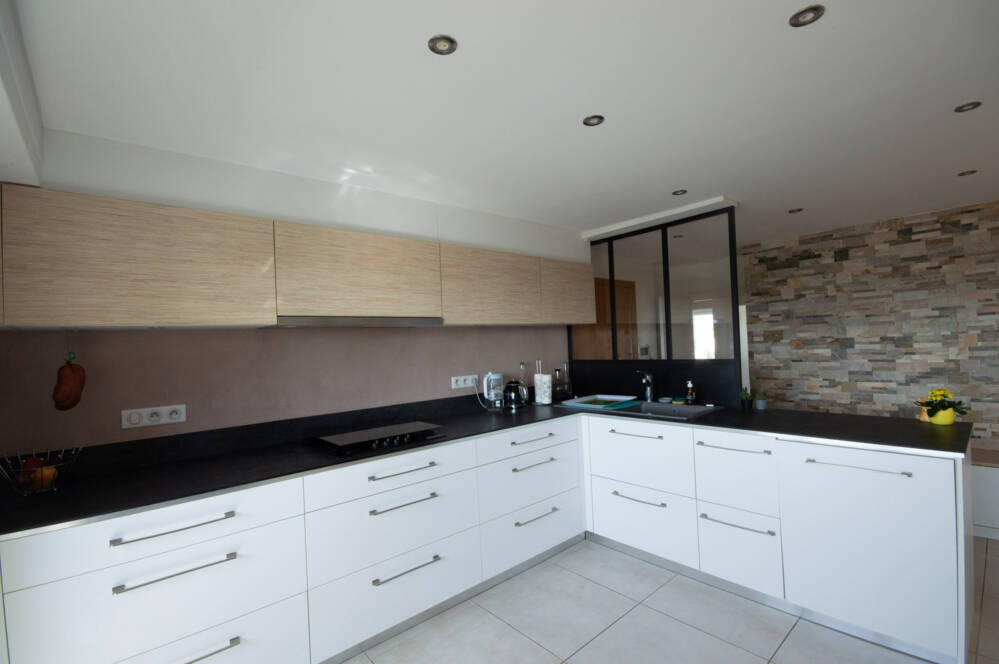 Dès l’entrée, vous serez séduit par un espace accueillant avec placard, menant à une cuisine moderne, entièrement équipée et aménagée, ouverte sur une spacieuse et élégante pièce de vie avec cheminée d'environ 55m2.