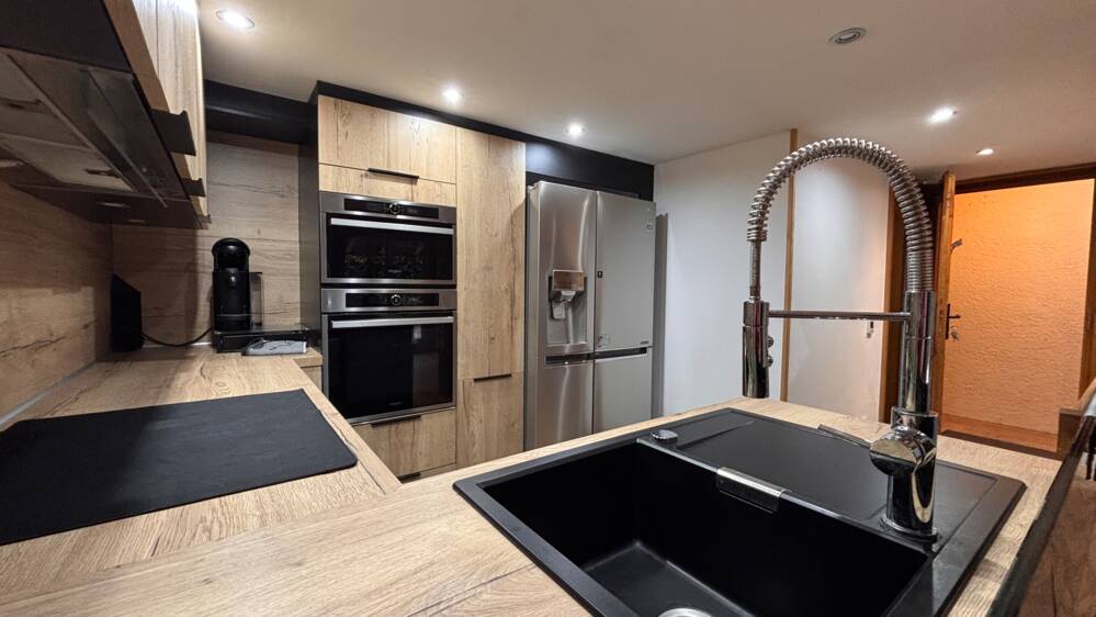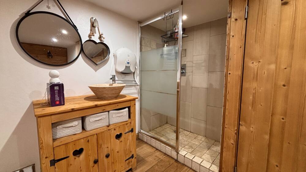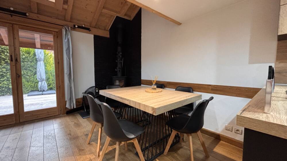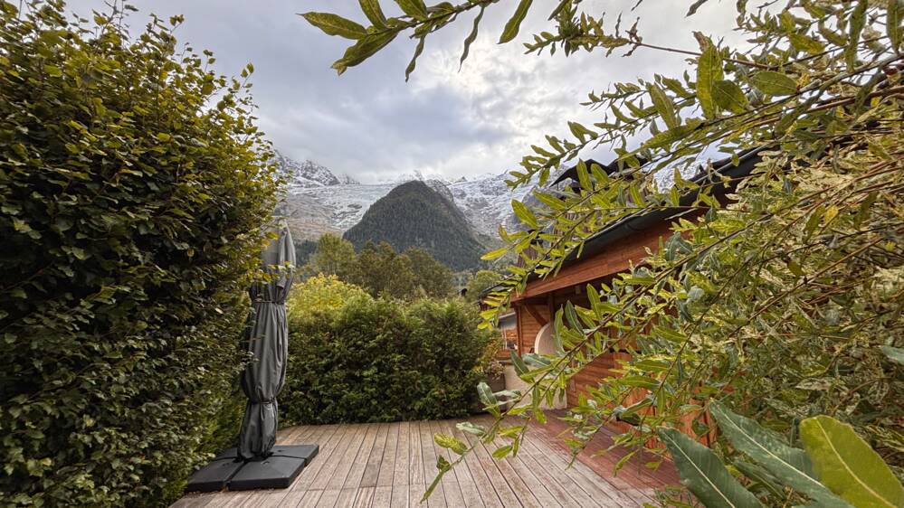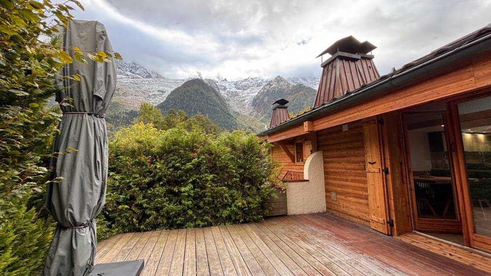 LC5224 CHAMONIX-MONT-BLANC — Coup de cœur assuré pour ce superbe triplex type chalet d'environ 108,77 m² environ surface totale, situé dans une petite copropriété de 8 lots. Il offre une entrée avec SAS, un séjour chaleureux avec cheminée et cuisine ouverte, ainsi qu’une belle terrasse exposée plein sud et sans vis-à-vis face au massif du Mont-Blanc. Comprenant 5 pièces dont 4 chambres (dont une très grande, idéale en salle de sport ou home cinéma), 3 salles d’eau (une en suite), 2 WC, buanderie avec local technique, vaste réserve de rangement et une cave à vins avec cellier. À proximité de la gare des Bossons, des arrêts de bus et des pistes cyclables, dans un environnement calme et verdoyant. En dépendances : place de parking extérieure collective, abri-bois attenant, cave et garage fermé.