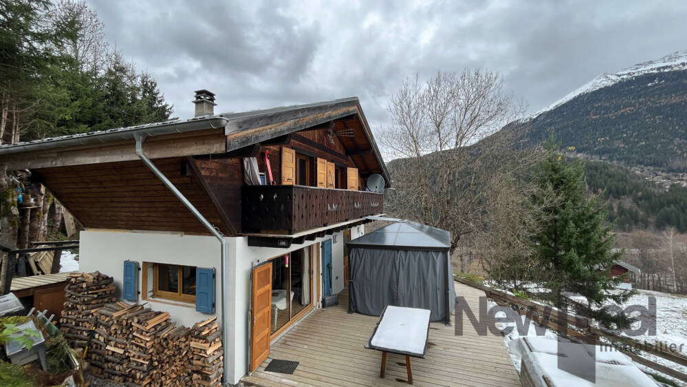 LC5305 Vallée de Chamonix Mont-Blanc, LES HOUCHES exceptionnellement bien placé pour ce Chalet principal avec son petit Chalet studio indépendant situé sur les Hauteurs du village d'une surface totale de 110 m² environ. Terrain de 1200 m² environ.Le chalet principal se compose d'une entrée sur cuisine équipée, salle de douche, une grande pièce de vie avec pole à bois; à l'étage on distingue 2 grandes chambres dont une avec mezzanine. Le petit chalet indépendant se compose d'une pièce principale avec espace cuisine et une salle de douche. Rénovation totale dont isolation complète par l'extérieur, double toiture, Huisseries,..... Très belle situation, Vue imprenable et complètement dégagée. Place de parking extérieure EXCLUSIVITE