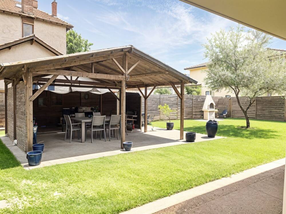 Je vous propose cette grande maison de 171m² habitables sur un terrain de 825m², à 5mn à pied du centre commercial "les Portes de Pujols", dans un secteur résidentiel très calme. Composition : pièce de vie de 50m² donnant sur le balcon, 5 chambres spacieuses, 2 salles d'eau, 2WC, buanderie de 36m², garage 30m². A noter la hauteur sous plafond de 2.50 m au rez de chaussée ce qui est rare et justifie une surface habitable importante sur ce type de produit. Equipements : huisseries double vitrage, volets roulants électriques partout avec centralisation, chauffage central, tout à l'égout, alarme. Toiture neuve. A l'extérieur, vous profitez d'une terrasse couverte, d'un barbecue et d'un puits pour l'arrosage. Toiture ok, tout à l'égoût mis en conformité, taxe foncière 1600 € . La pose d'une pompe à chaleur air-eau est éligible à maPrim'Renov et ferait passer les DPE en C.
