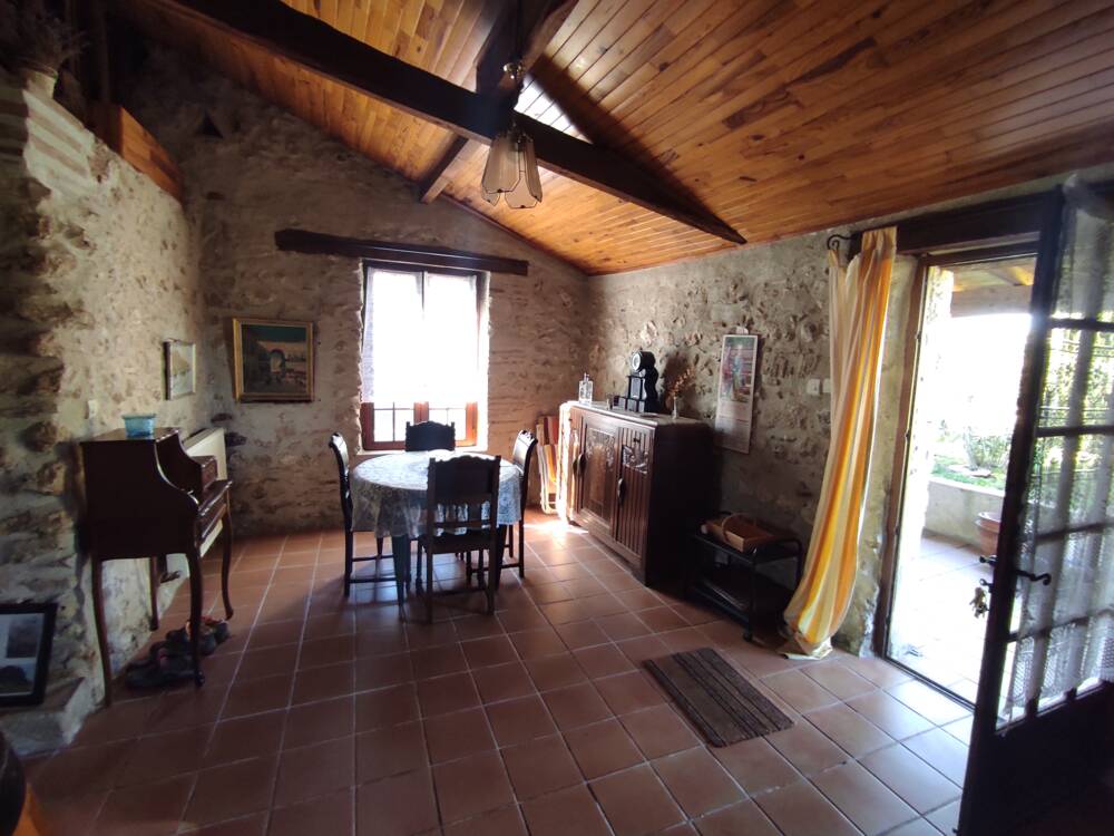 Je vous propose cette maison en pierres de 200 m² , sur une parcelle de 500 m² située dans un charmant hameau de la commune de PINEL-HAUTERIVE. Rez de chaussée : Cuisine dinatoire équipée, cellier, pièce de vie de 60m², wc, salle de bain-douche. A l'étage : 3 chambres mansardées, dressing, wc. Une annexe (chambre + salle d'eau à finir) de 25 m² ainsi que 2 grands garages avec portes sectionnelles complètent l'ensemble. Equipements : grand insert-cheminée bois, chauffage central, huisseries double vitrage, volets dont 5 électriques, velux avec volets électriques, VMC hygroréglable, four à pizzas, portes de garages électriques. Le remplacement de la chaudière par une PAC air-eau est envisageable si le chauffage au bois vous paraît trop contraignant, le DPE passant alors de E à C, voire B. Les carrelages, les nombreuses poutres apparentes, la cuisine de style rustique séduiront à coup sûr les amateurs du charme de l'ancien.
