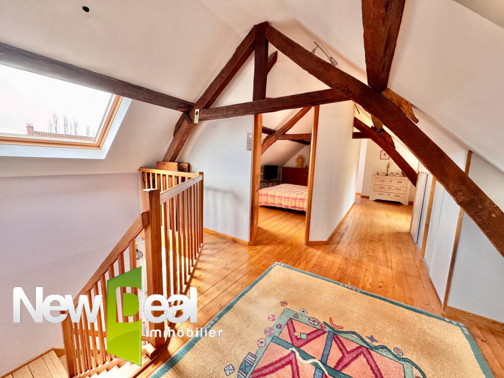 Le deuxième étage accueil une grande chambre de 25 m2 avec ces poutres apparentes, et sa salle de douche.