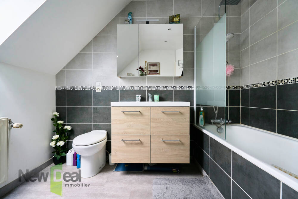 À l’étage, vous profiterez de 3 belles chambres , idéales pour accueillir toute la famille ou aménager un espace bureau et ou dressing. Ainsi qu'une salle de bain avec baignoire, vasque et un WC sanibroyeur .