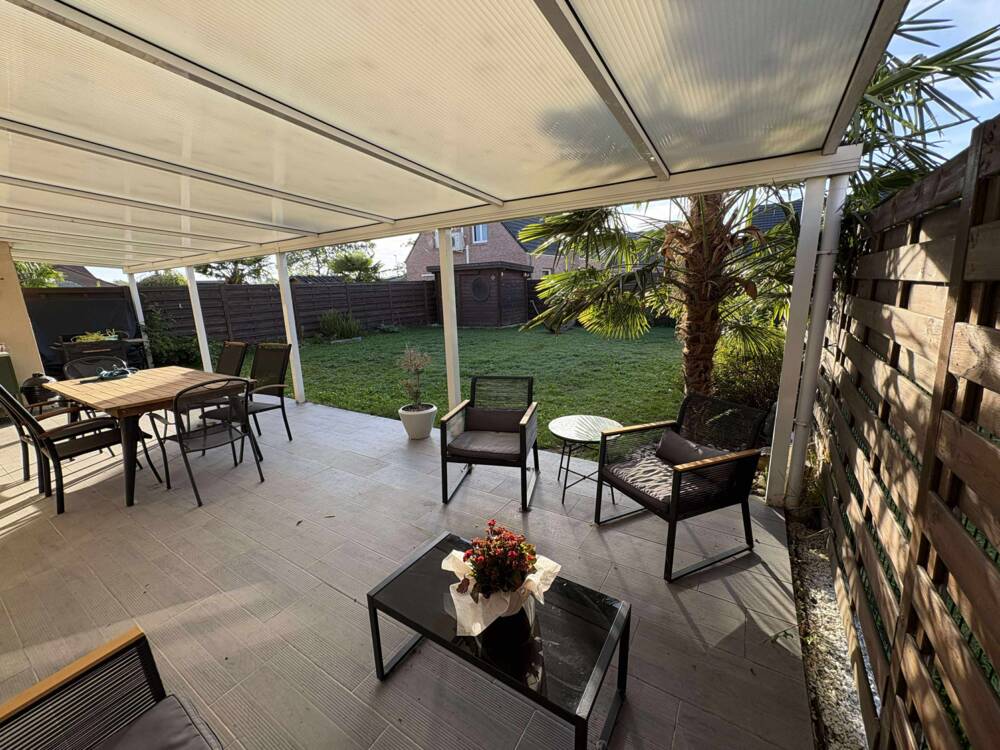 À l’extérieur, l’avant de la maison dispose d’une large allée fermée par un portail électrique, permettant de stationner plusieurs véhicules. À l’arrière, un agréable jardin et une grande terrasse équipée d'une pergola vous offriront un cadre idéal pour vos soirées d’été.