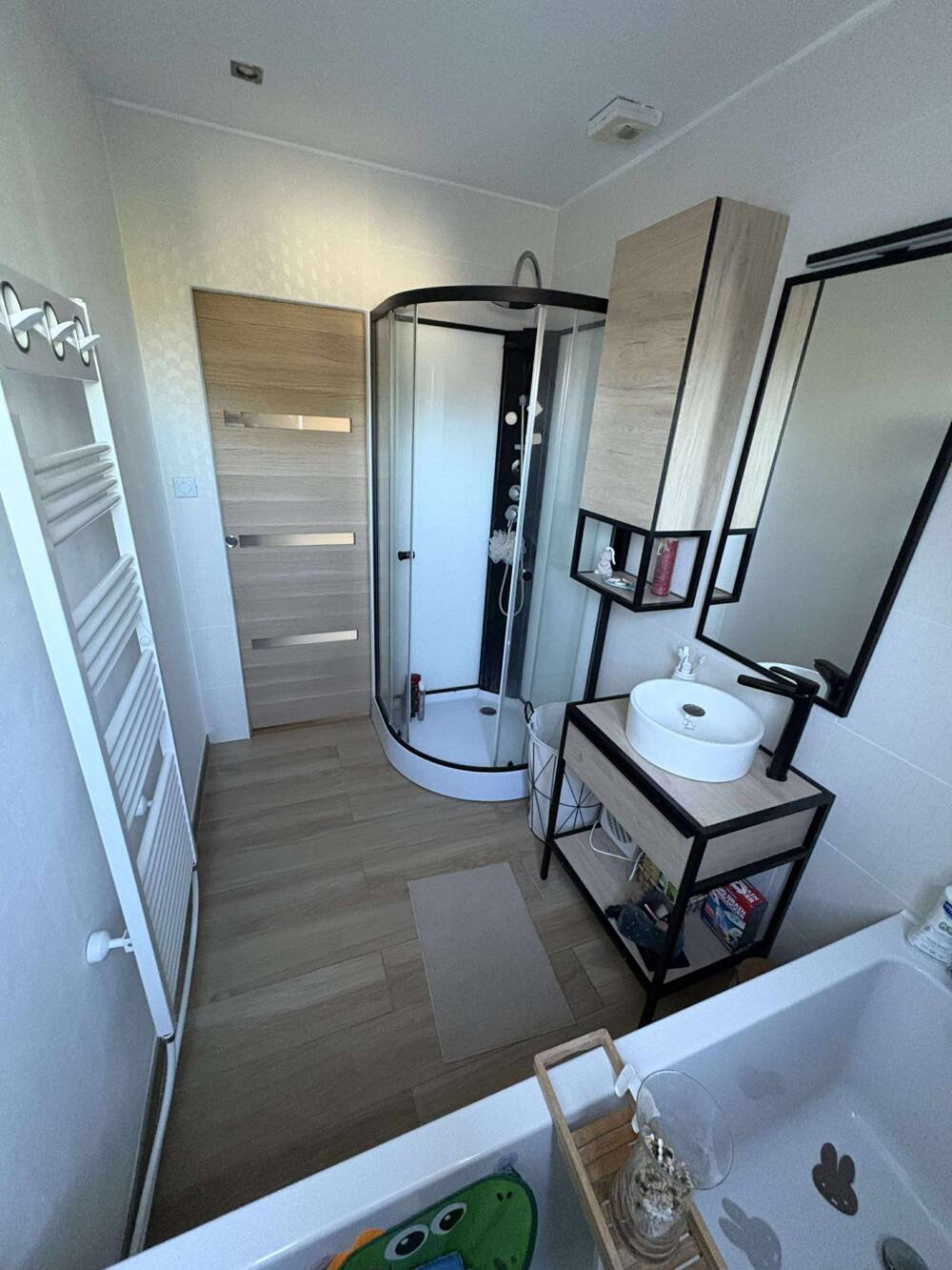 À l’étage, vous profiterez de quatre chambres spacieuses, idéales pour accueillir toute la famille ou aménager un espace bureau et ou dressing. Ainsi qu'une salle de bain avec baignoire, douche et vasque .