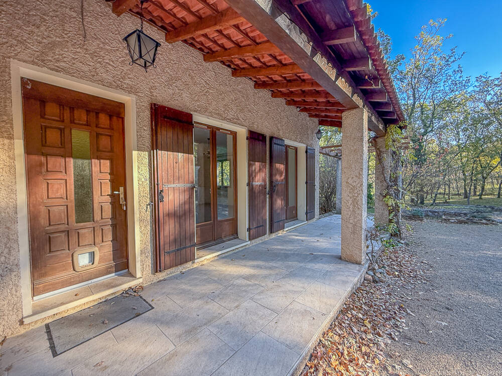 CG5110_Entre Mons et Callian, nichée en pleine nature sur un terrain clos de 3 200 m², découvrez cette belle propriété de plain-pied qui comprend une entrée, un grand espace de vie comprenant un séjour lumineux avec cheminée et une cuisine ouverte, aménagée et équipée, 3 chambres confortables, une salle de bains et un WC indépendant. En annexe, un garage attenant à la maison avec mezzanine pour un espace de rangement supplémentaire, et un grand vide sanitaire pouvant être transformé en espace de rangement. Maison équipée d'une pompe à chaleur installée récemment! Prix : 390.000 €