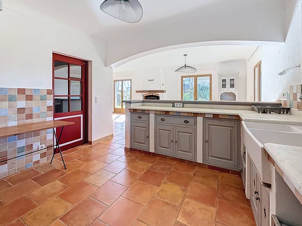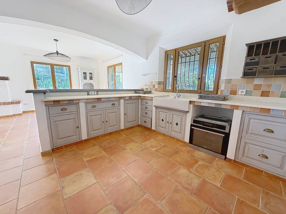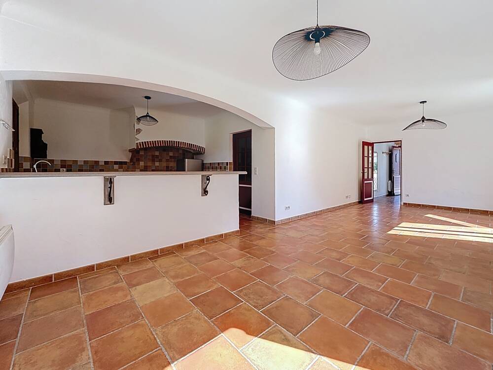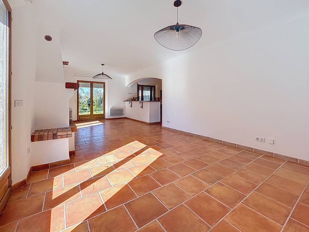SOUS OFFRE D'ACHAT - CG5052_Montauroux, Venez découvrir cette propriété de plain-pied des années 80, édifiée en coteau, offrant une surface habitable d'environ 110 m² sur un terrain entièrement clôturé de 3 780 m². Cette maison comprend une entrée, un salon-séjour avec cheminée à foyer ouvert d'une surface d'environ 40 m², une cuisine spacieuse de 16 m² équipée d'un four à pain et à pizza, trois chambres d'environ 10 m² chacune, une spacieuse salle de bain et un WC séparé. En complément, une terrasse couverte type véranda attenante au salon-séjour, un garage faisant office d'atelier, ainsi qu'un autre garage en annexe incluant un espace de stockage complémentaire. Prix: 480.000€